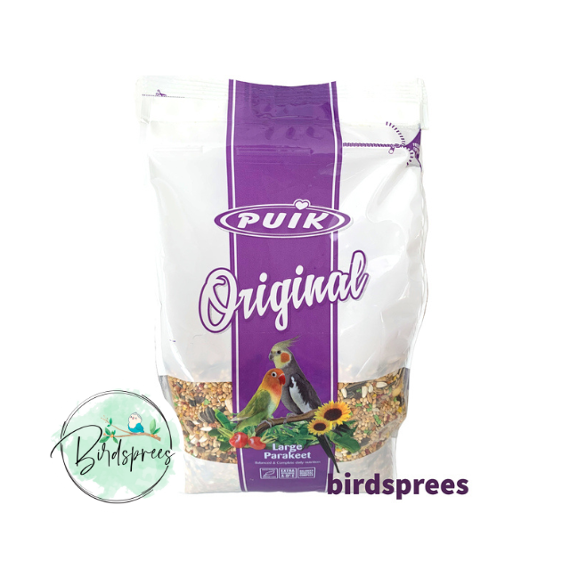 Puik original large parakeet is a balanced daily feed for many species of large parakeets, such as cockatiels and lovebirds.